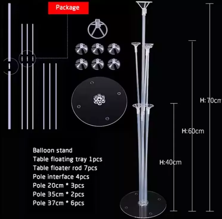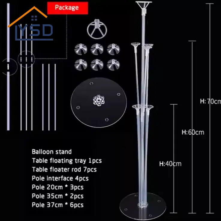 Держатель воздушного шара обычно прозрачен. Свалитые воздушные шары, как правило, выглядят жестко. Прозрачный держатель воздушного шара YSD - это не только одна высота. Есть разные длины в наборе держателя воздушного шара. Например, лучшая, которую мы продаем, - это комбинация 70 см, 60 см и 40 см. Есть один 70 см, 3 60 см и 3 40 см. Они в сочетании с воздушными шарами, чтобы разбросить и упорядоченные воздушные шары. Этот «ошеломленный» эффект полностью достигается этими прозрачными положениями различных длины.