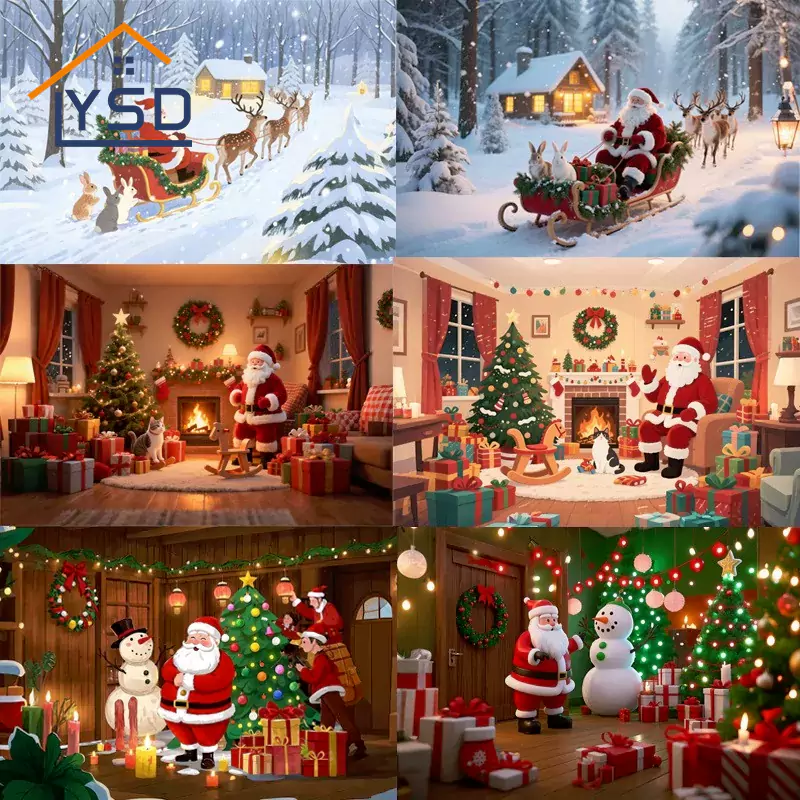 Рождественский фон - идеальный последний штрих для любого праздничного украшения. Просто повесите его и заполните любое пространство теплой и праздничной атмосферой. Будь то красивый показ в окне торговых центров, праздничная сцена для ежегодного собрания компании или уютная обстановка в вашей домашней гостиной, он быстро и эффективно создает вашу желаемую праздничную атмосферу. Планируя приобрести высококачественные декоративные материалы в этом рождественском сезоне, тщательно спроектированная и изготовленная линейка продуктов YSD является надежным выбором.