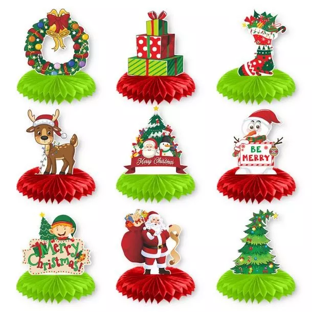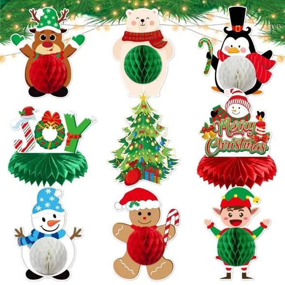 Наши рождественские соты украшены трехмерной сотовой структурой. Когда они уложены, они кажутся такими же тонкими, как лист бумаги, но развернулись, чтобы показать совершенно новое измерение, создавая яркие и богатые рождественские дизайны. Помимо знакомых элементов Санта -Клауса, рождественских елок и рождественских чулок, было включено много новых элементов. Эти новые элементы привлекательны, уникальны и мгновенно поднимают рождественский сезон.