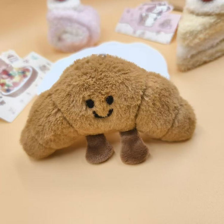 В качестве плюшевого изделия подвесной брелок в форме хлеба Furry изготовлен из высококачественной короткой плюшевой ткани. Он мягкий и приятный для кожи, с плотной и гладкой поверхностью для волос, не оставляет волос и не оставляет следов. При этом он обладает хорошей воздухопроницаемостью и не будет вызывать дискомфорт при длительном контакте с кожей. Внутренний наполнитель – высококачественное полиэфирное волокно 7D, обладающее высокой объемностью и хорошей эластичностью. Он может быстро восстановиться после сжатия без деформации. Что еще более важно, все ткани прошли испытания на безопасность, соответствуют международным стандартам безопасности, таким как EN71 и ASTM F963, не содержат вредных компонентов и могут безопасно использоваться взрослыми и детьми. Кроме того, ткань легко чистится. Незначительные загрязнения можно очистить влажной тканью, что удобно для ежедневного ухода потребителей, а также повышает долговечность продукта, позволяя покупателям легче продавать.